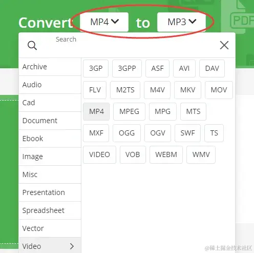 mp4转mp3的方法1:借助在线转换工具