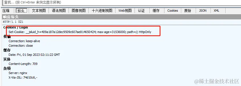 第二次521请求是通过携带第一次生成的两个cookie__jsluid_h 和 __jsl_clearance 然后去请求