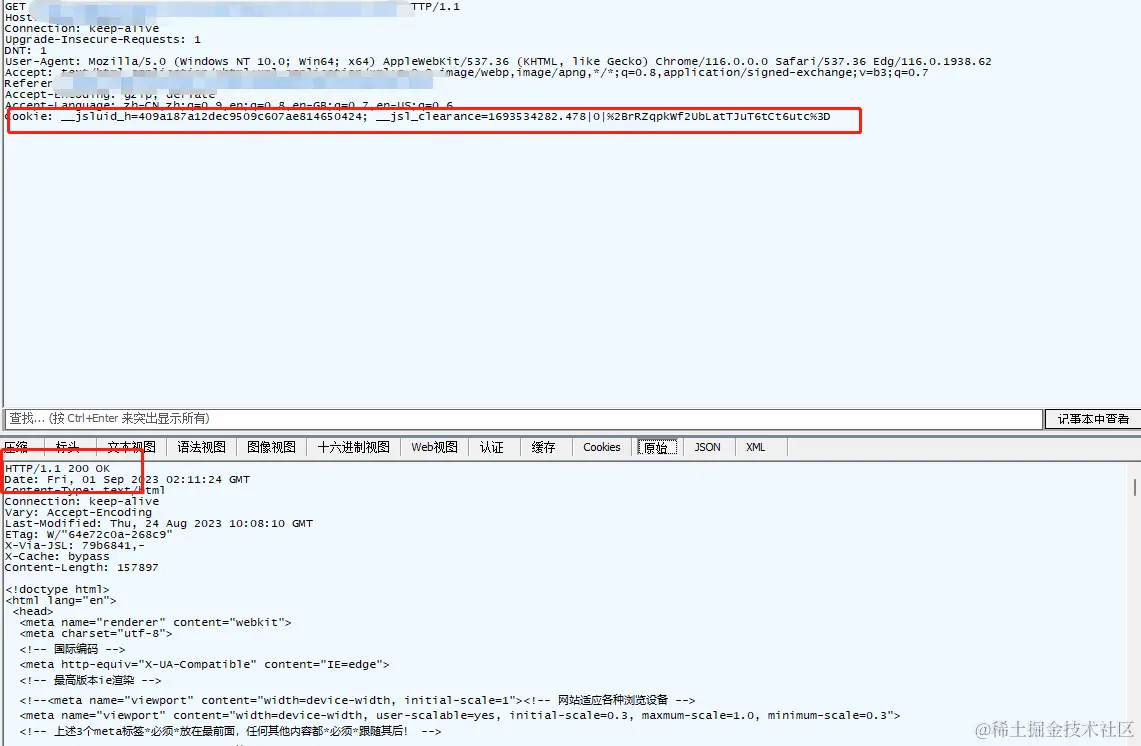 第三次请求抓包抓到的cookie: __jsl_clearance=1693534282.478|0|%2BrRZqpkWf2UbLatTJuT6tCt6utc%3D;