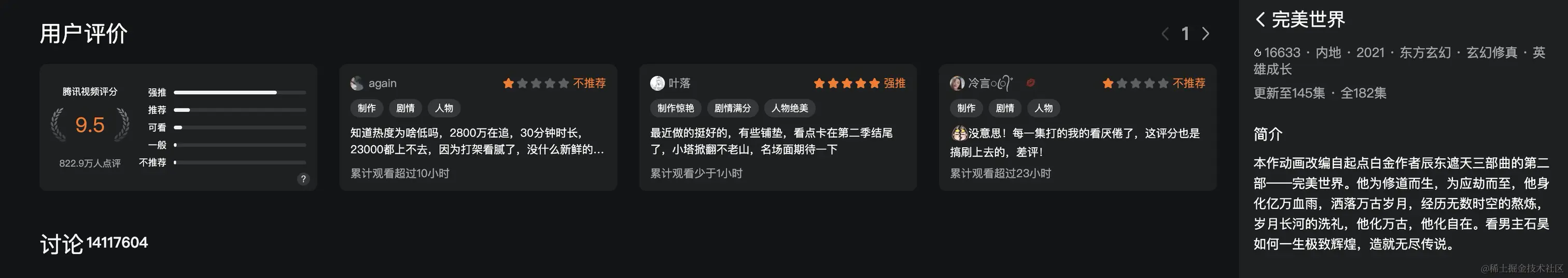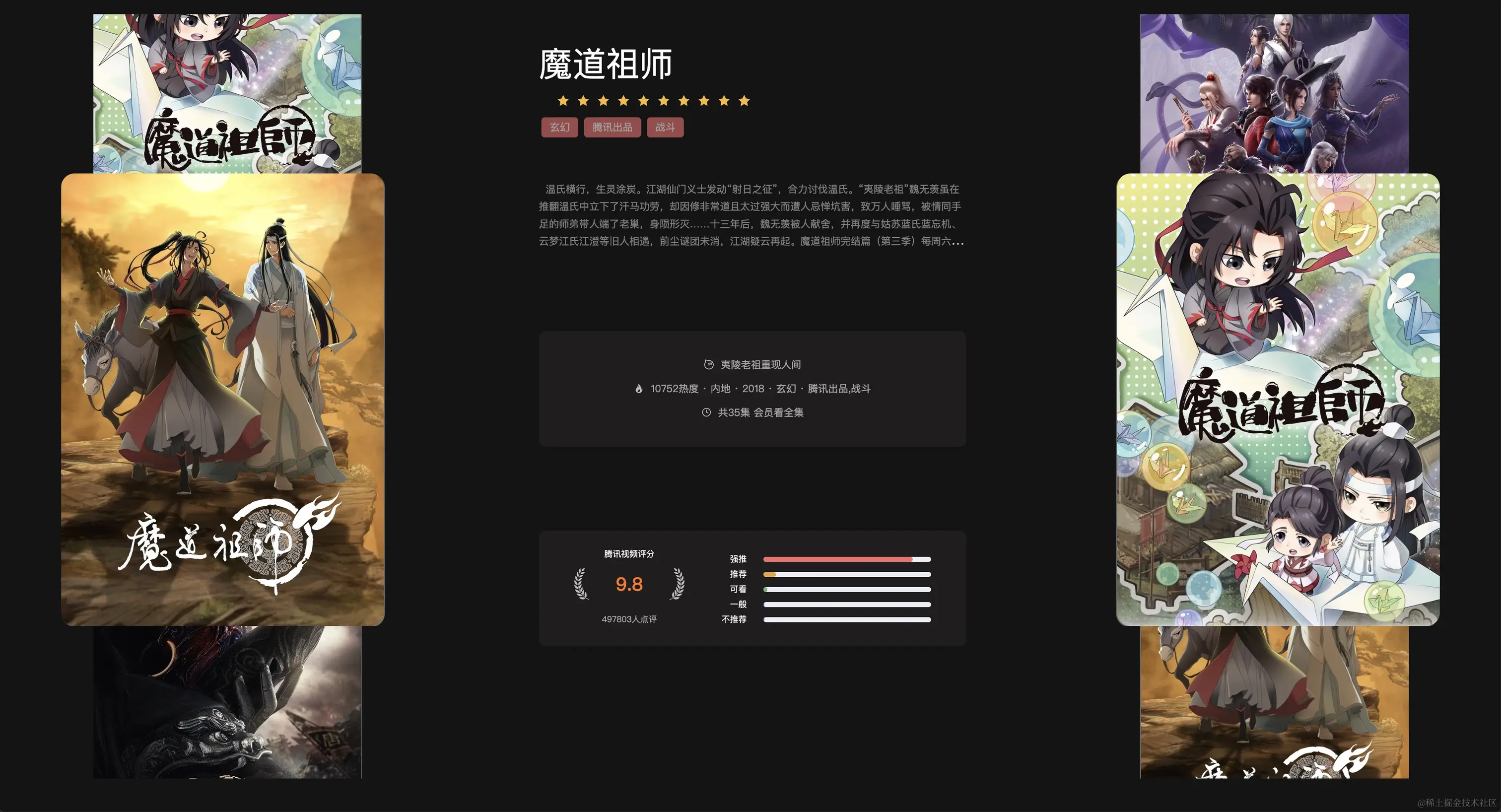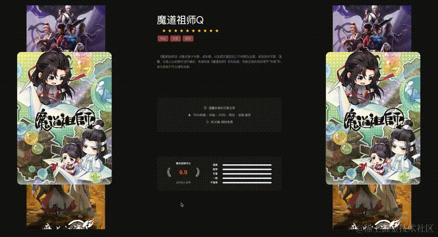 于是就打开腾讯视频看看评分,每个视频都要点开才能看到评分和介绍。随即就萌生了用技术整合国漫评分内容的想法。最后历经一周,完成了一个简单的评分展示系统。