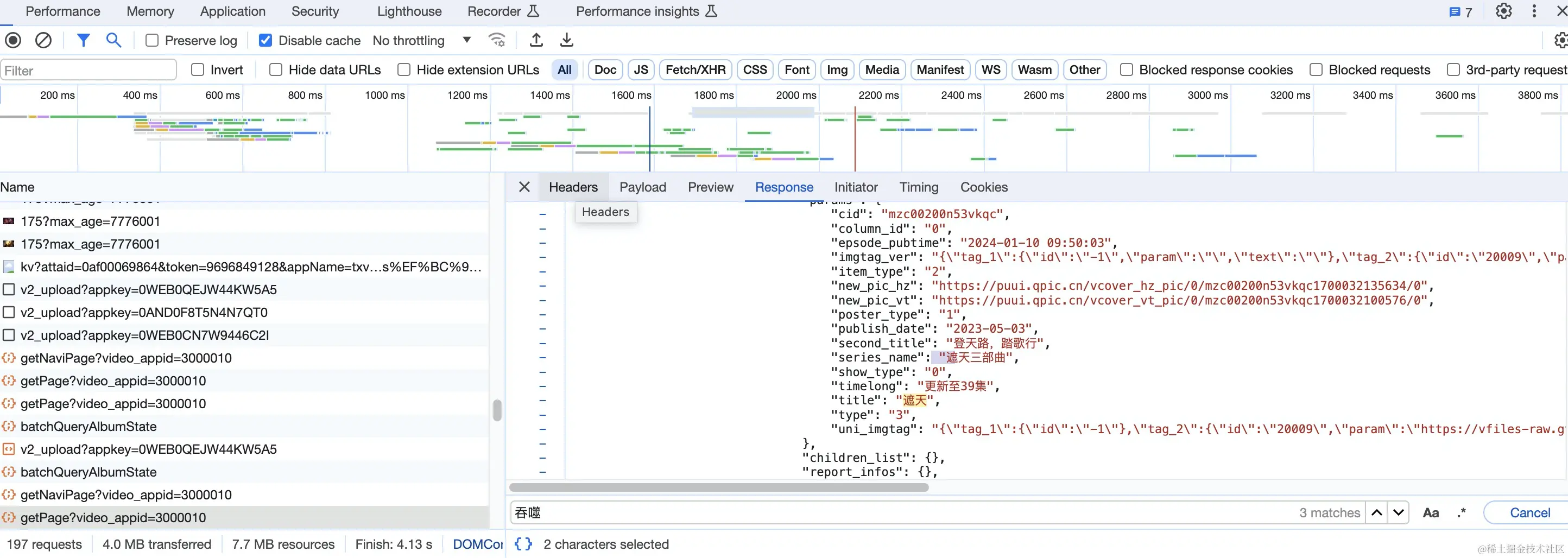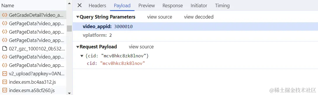 这里可以看到每部动漫的cid。然后对playload进行分析,查看请求的参数信息。