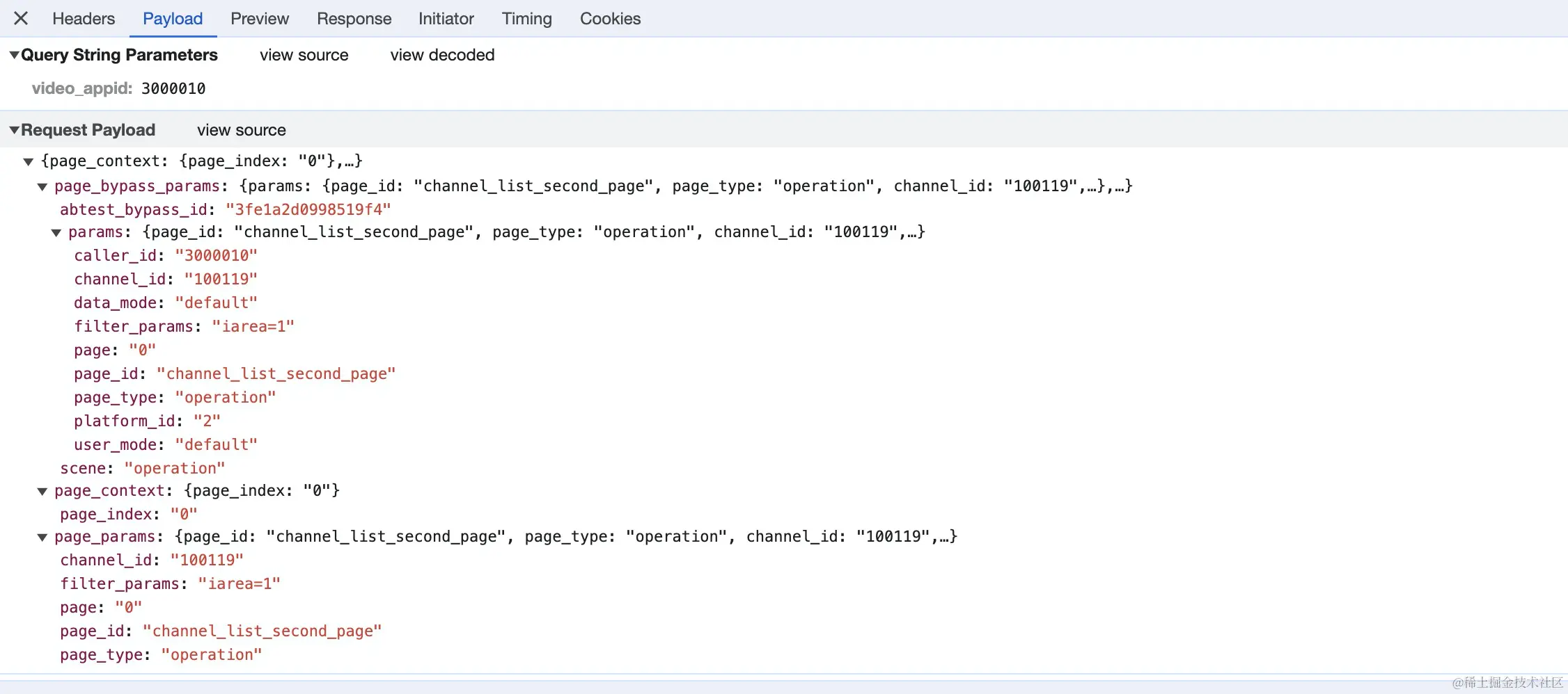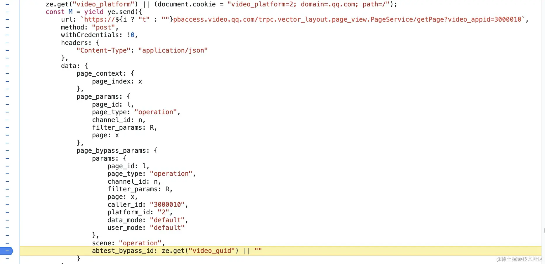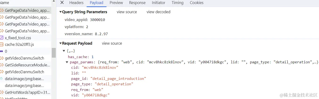 可以看到请求参数里面有:x、l、R、n、video_guid几个可变参数。通过分析和debug最后得知,每次请求的变化的只有x,即page_index和page,其他的参数都是固定值。