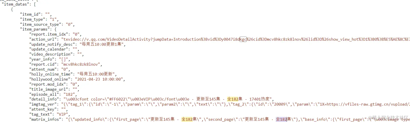在html网页中发现了vid的列表信息,对于网页中数据的提取一般使用正则表达式。这样在我们获取了cid之后,就能获取vid。