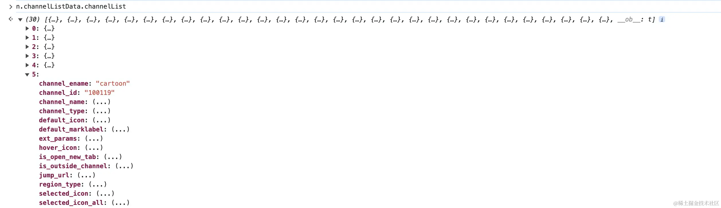 过滤条件就是是channel_ename == t.channelId,这里的t.channelId通过打印发现是“cartoon”,可以看到channel_ename为cartoon对应的channel_id为100119.