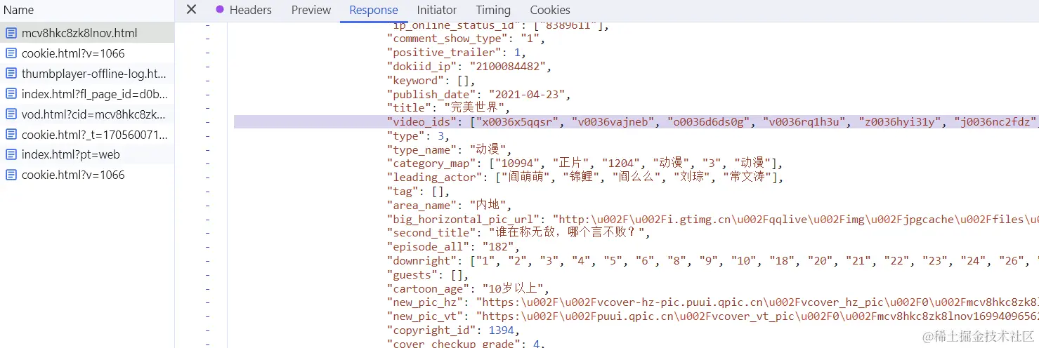 我们在国漫列表页点击连接进入播放页的时候,是先进入v.qq.com/x/cover/[ci…