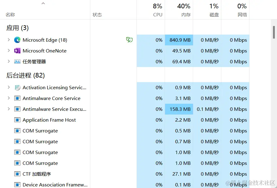 Java的并发指的是多线程,而与多线程对应的有个进程的概念,啥是进程呢?我们通过CTRL+SHIFT+ESC组合快捷键打开电脑的任务管理器,我们就看到了如下的这幅图。