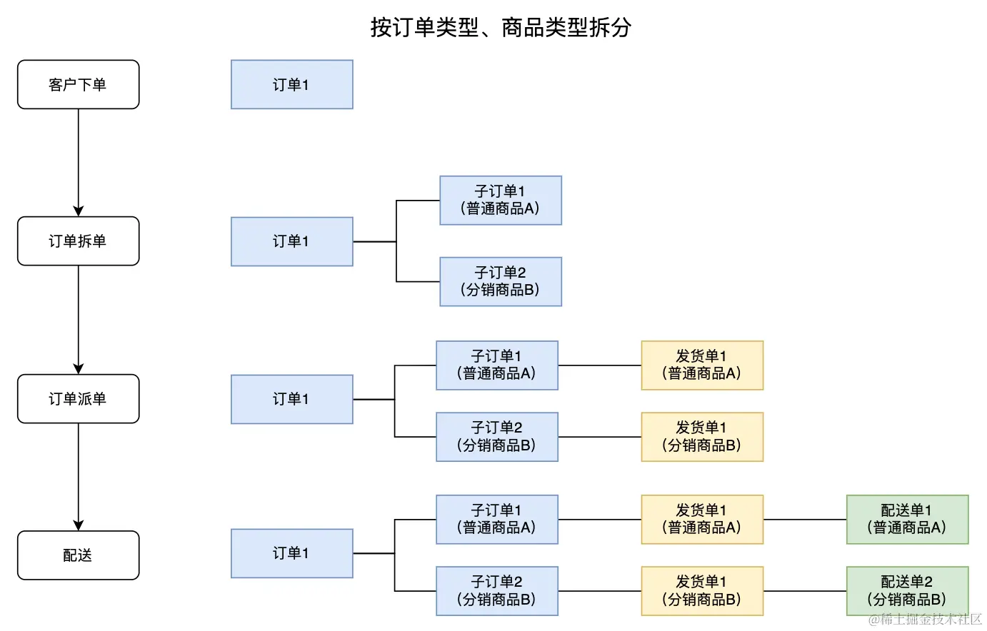 由于订单和商品类型的差异,我们需要将其拆分成不同类型的子订单。