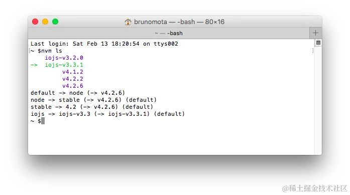 每当我们安装了一个新版本 Node 后,全局环境会自动把这个新版本设置为默认。
