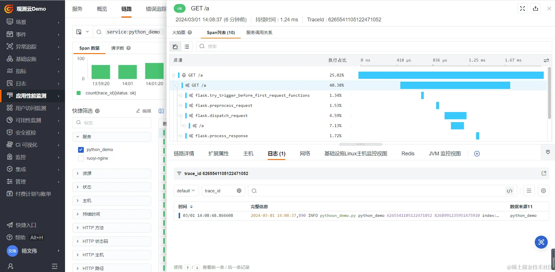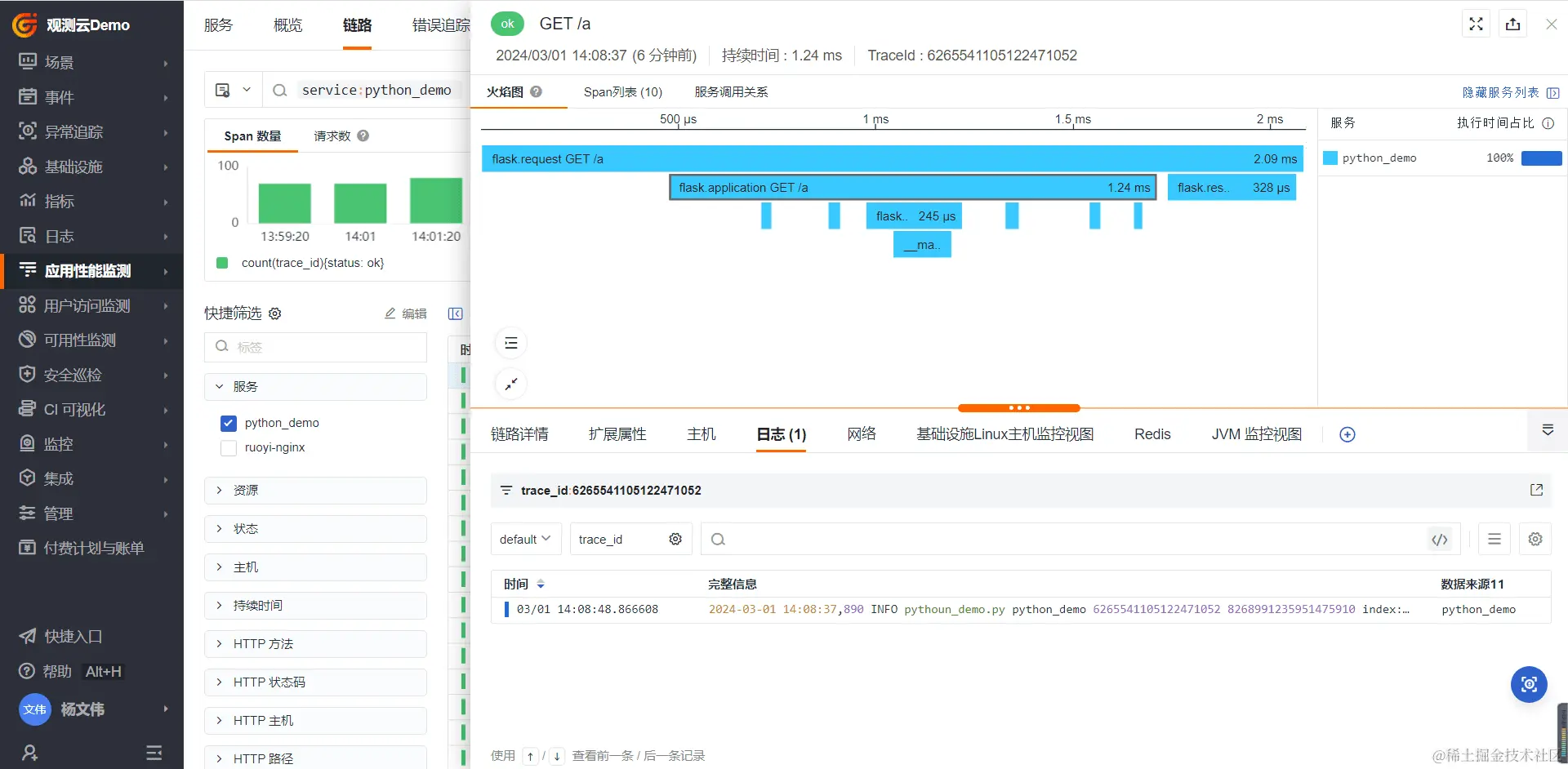 本次实践主要是介绍 Python 服务通过无侵入的方式接入观测云进行全面的可观测。