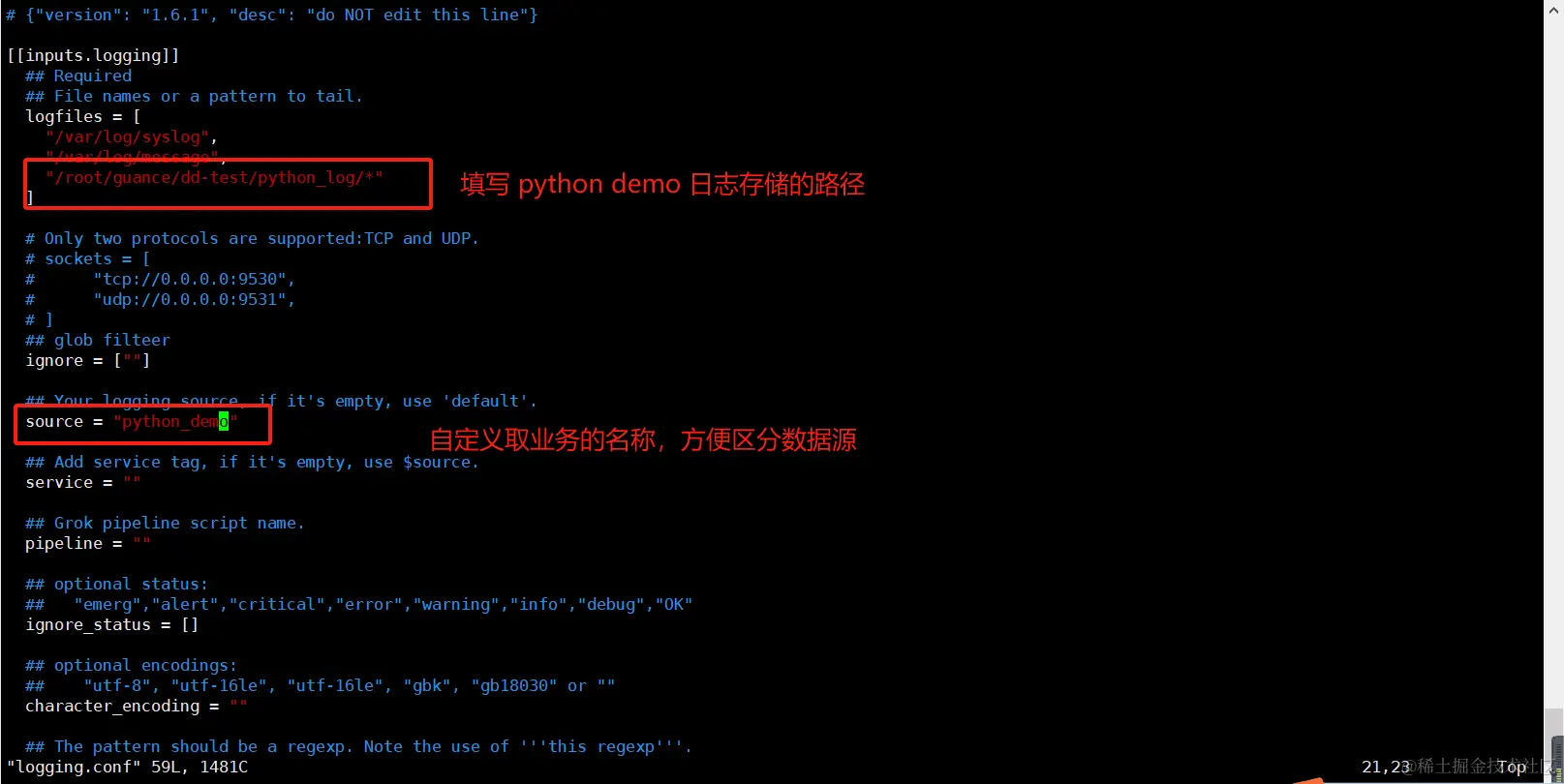 vim /usr/local/datakit/conf.d/log/logging.conf