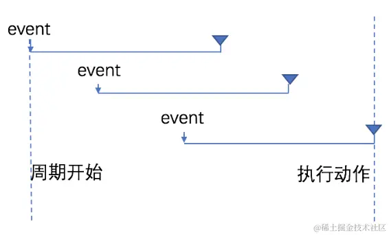 原理:一个 dom 事件被触发时,会设定一个延迟处理时间,在这个时间内再次触发该事件,则会重新设定一个延迟处理时间。