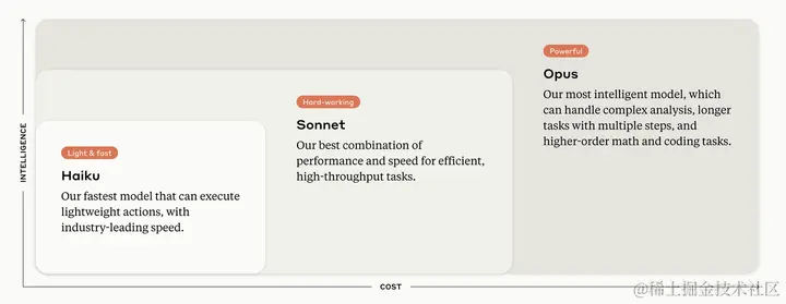 Anthropic 这两天宣布推出其最新大型语言模型(LLM)系列——Claude 3,这一系列模型在各种认知任务上树立了新的性能标准。Claude 3 系列包括三个子模型:Claude 3 Haiku、Claude 3 Sonnet 和 Claude 3 Opus,这个命名真是有意思,Opus(超大杯)、Sonnet(大杯)、Haiku(中杯),一眼就能理解其中的规模大小。每个模型都提供了不同程度的智能、速度和成本选择,旨在满足广泛的人工智能应用需求。