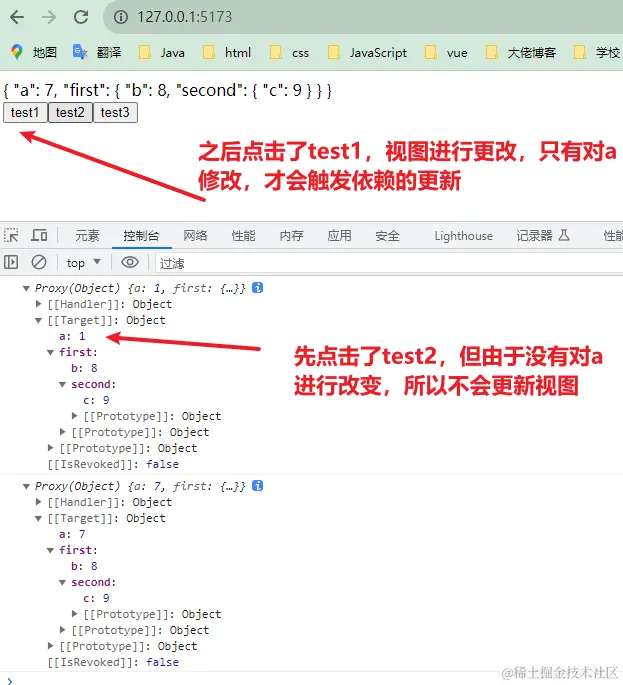get()拦截对原对象属性的访问,追踪哪些属性被读取了。 - 在代理对象proxy中