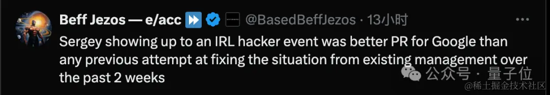 对此有网友认为,布林这次出席线下开发者活动,比谷歌这两周来进行的任何危机公关都要有效。