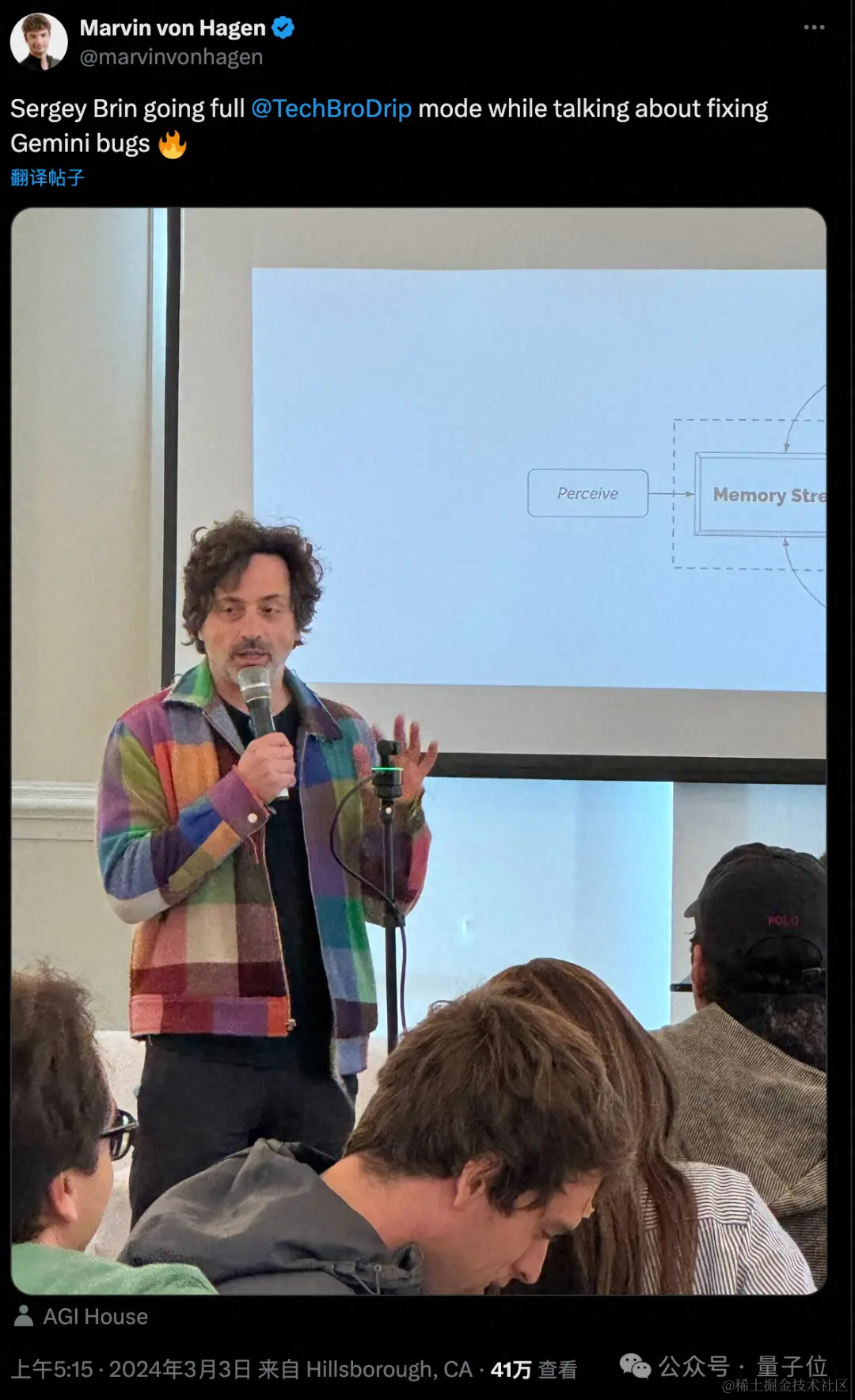 在将近 40 分钟的演讲中,布林谈到了 Gemini 开发内幕、AGI、AI 对社会影响的看法等,还诚实地回答了大家的许多问题。