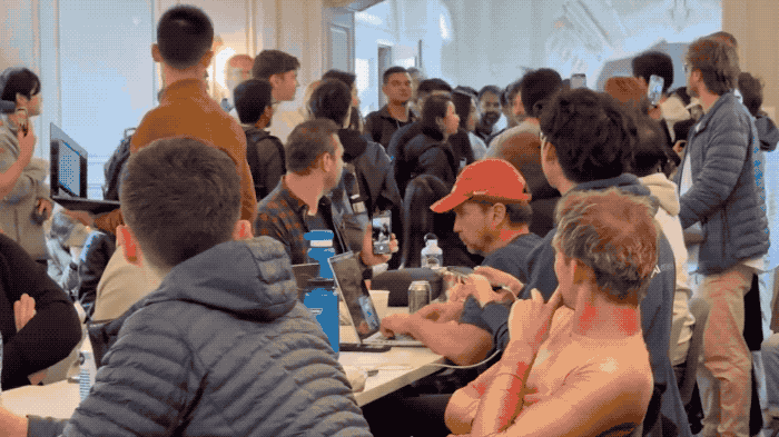 开发者们周末背着笔记本电脑聚到一起,组队在有限时间内开发 AI 应用原型。