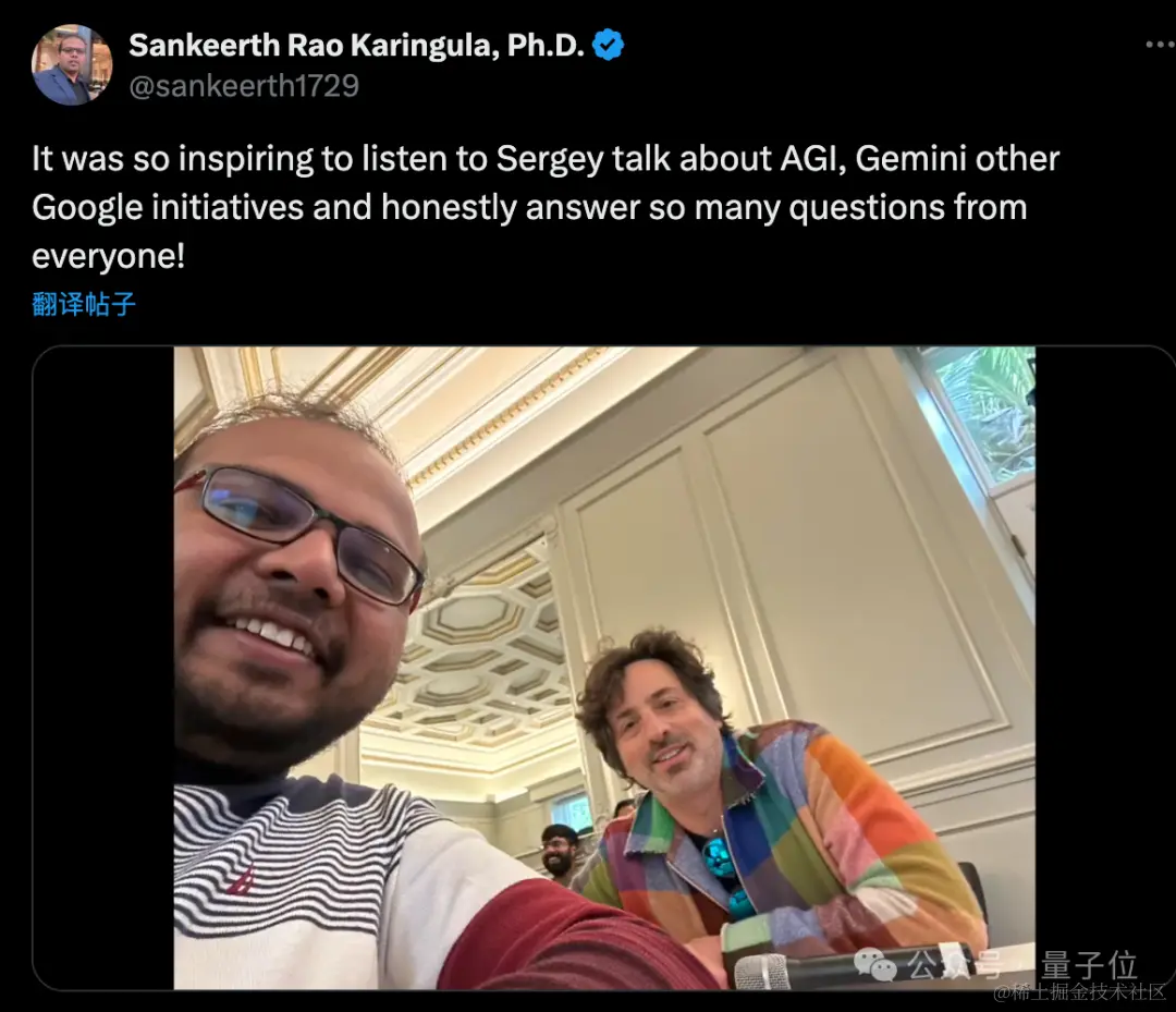 有在现场的谷歌前研究科学家晒出合影,并表示非常受启发。