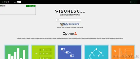 - 这个网站极富创意,通过生动的动画演示,将排序、链表、二叉树、图遍历、递归、循环等多种算法的实现过程展现得淋漓尽致.对于初学者来说,它是理解算法逻辑的理想之地.