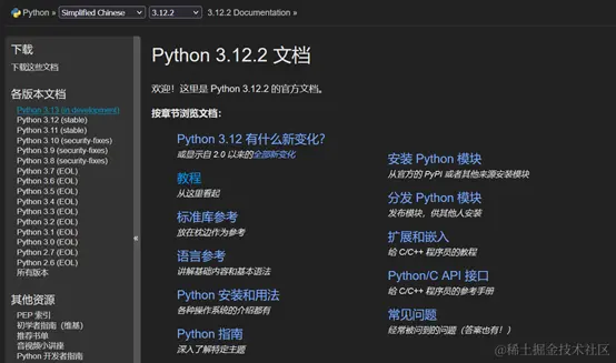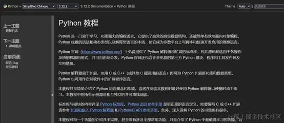 - Python官方文档是学习Python不可或缺的权威资源,它详尽地阐述了Python3的完整语言规范、标准库以及丰富的第三方库.这份文档提供了详尽的参考信息和丰富的示例,对于初学者和进阶学习者来说都极具价值.