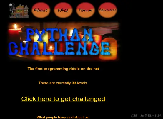 - PythonChallenge是一个通过解决谜题来学习Python 的网站,其中包含了33个谜题,每个谜题都需要使用 Python 来解决.通过解决这些谜题,可以让学习者更深入地了解 Python 的特性和应用.