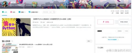 - 这个是B站大佬看漫画学Python,有趣、有料、超级搞笑的Python教程!这么好的课程当然要偷着学了