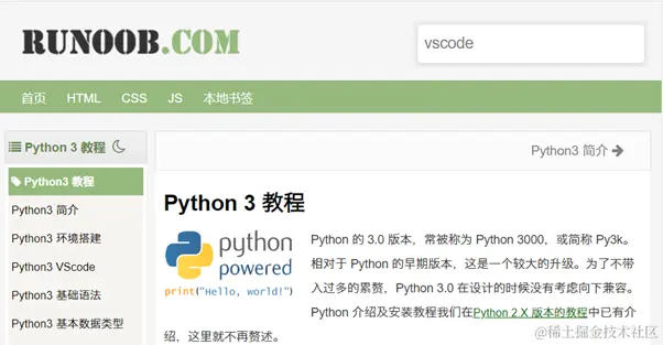 网址: https://www.runoob.com/python3/python3-tutorial.html
