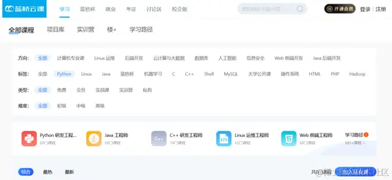网址: https://www.lanqiao.cn/courses/?tag=Python