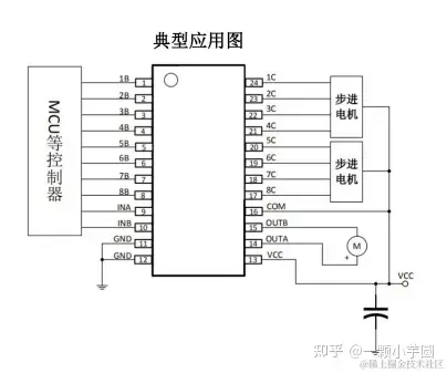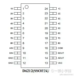 D6212内置8路带有续流二极管的达林顿驱动管阵列和一个H桥驱动,单芯片即可实现2个步进电机和一个IR-CUT的直接驱动,使得电路应用非常简单。单个达林顿管在输入电压低至 1.8V 状态下支持电流 300mA 输出,将达林顿管并联可以得到更大输出电流能力。D6212的每一路达林顿管内部串联一个基极电阻,5V 工作电压以下可直接与 TTL/CMOS 电路连接,可直接处理原先需要标准逻辑缓冲器来处理的数据。D6212采用SSOP24的封装形式封装。