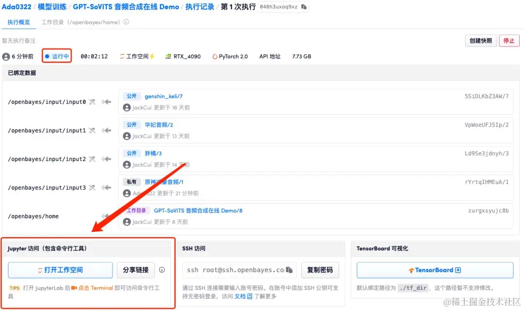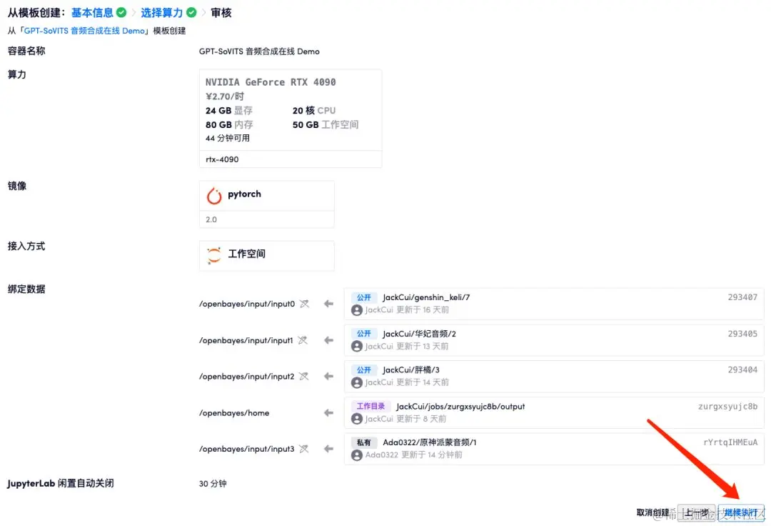 跳转页面后,点击「继续执行」。推荐使用 RTX 4090。