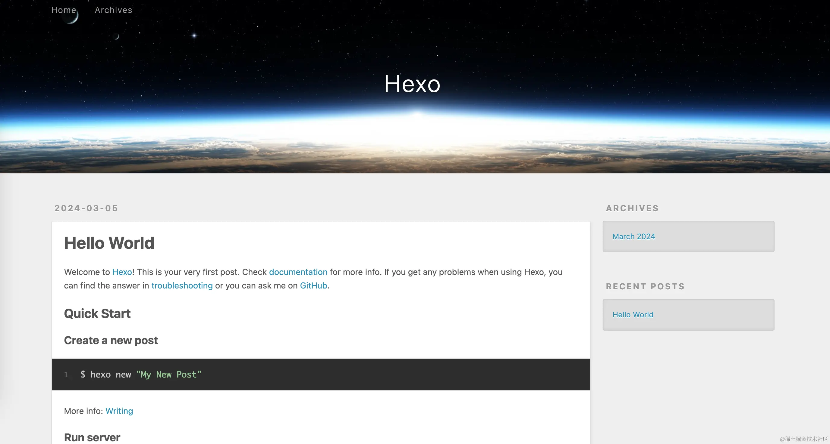 执行完毕后启动 hexo:
