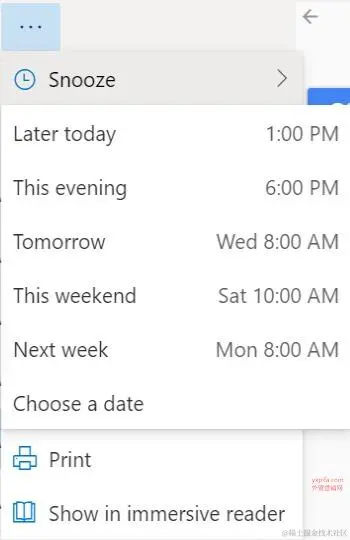 点击上方的“三点”,点击[Snooze 延迟],便可以选择延后的日期或是自定义日期。