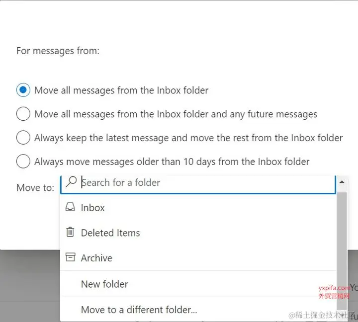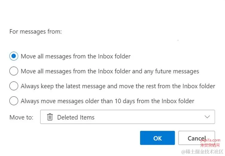 - 以后此账号寄来的邮件,都自动从收件箱中移走所有邮件和任何未来的邮件