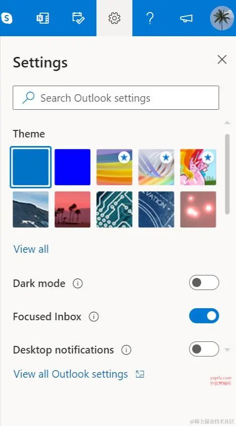 Outlook其实会帮我们分类邮件,分别是焦点邮件(Focused 焦点)和其他邮件(Other 其他)。前提是需要先打开焦点收件箱的设置,前往[Setting 设置],打开[Focused Inbox 焦点收件箱]即可。