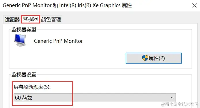 步骤4:在【监视器】中,找到 【屏幕刷新频率】设置,并尝试调整到一个合适的值(如60Hz或75Hz);