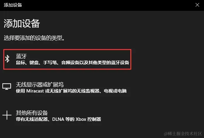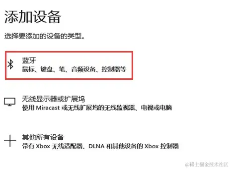 步骤3:再单击 【蓝牙】 选项,添加设备类型。