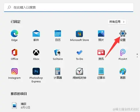 步骤1:点击菜单栏中的win窗口图标按钮,进入 【设置】 选项。