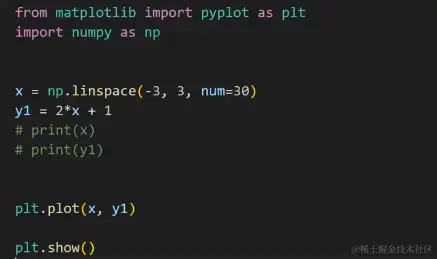 如下,指定x和y的数据,然后调用plt.plot(),最后再加一个ply.show()就能把画的图显示出来