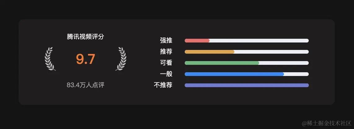 没有前端设计的这种艺术细胞,所以这里打算复刻腾讯视频的评分展示页。评分数据展示我使用的是ElementPlus的el-card组件,