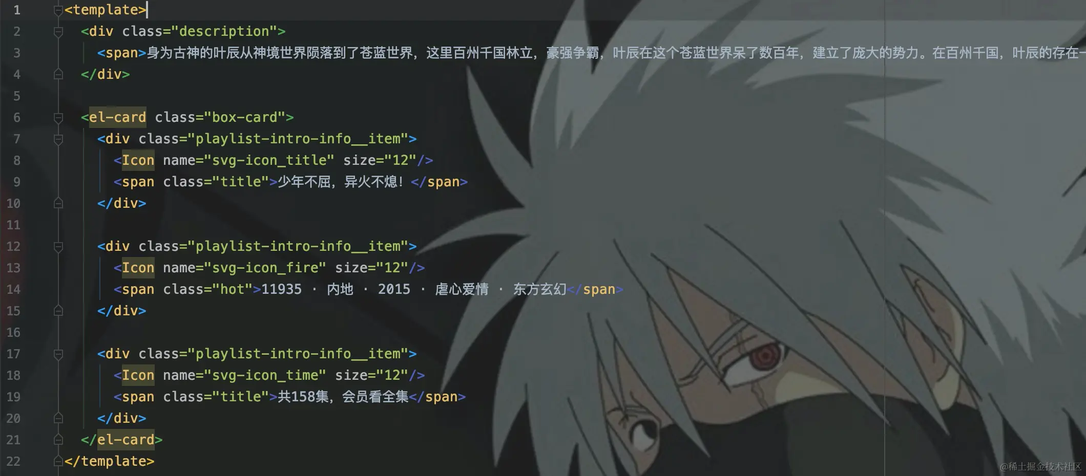 这里分成了两个部分,动漫简介其实就是一个div。