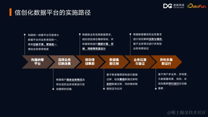 第四部分将探讨金融信创数据平台的典型落地路径,分为六个阶段: