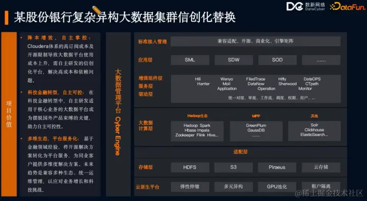第三部分详细介绍数新网络在金融信创背景下独立自主研发的云数据智能平台 DataCyber 的架构设计和相关实践。