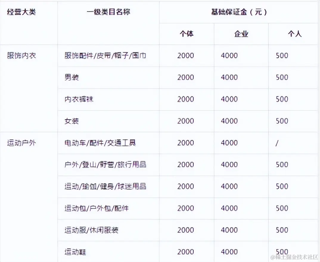另外,不管是开通个体店还是企业店,不同类目不同行业的保证金都不一样。