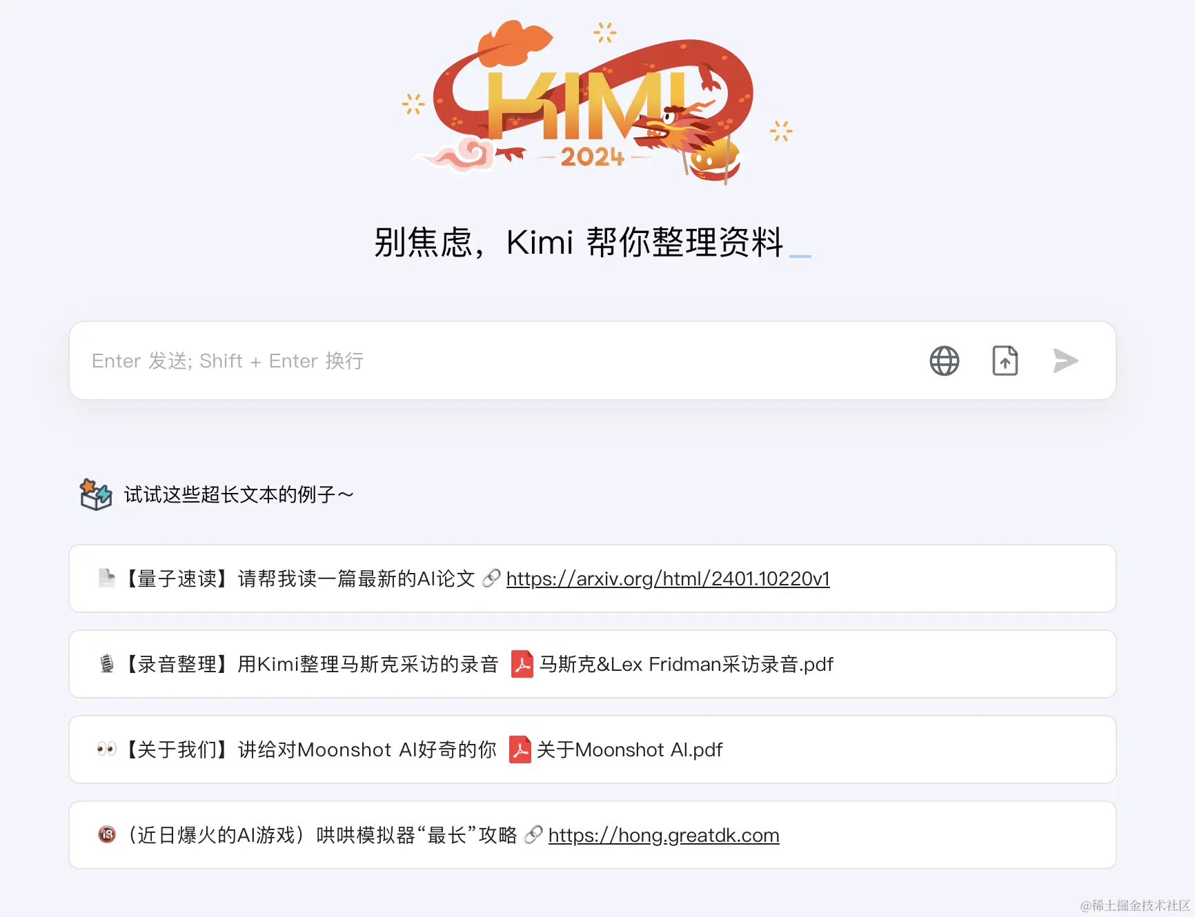 Kimi Chat 是月之暗面公司推出 AI 产品,Kimi Chat 在中文上具备显著优势,实际使用效果能够支持约 20 万汉字的上下文。