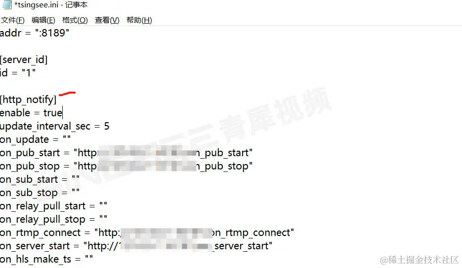 技术人员立即对用户反馈的现场现象进行查看,发现只要直播通道中断后续重新上线,转推的通道都无法再次推上去。查看mediaserver文件里tsingsee.ini的配置信息,发现[http_notiy]处于false状态。