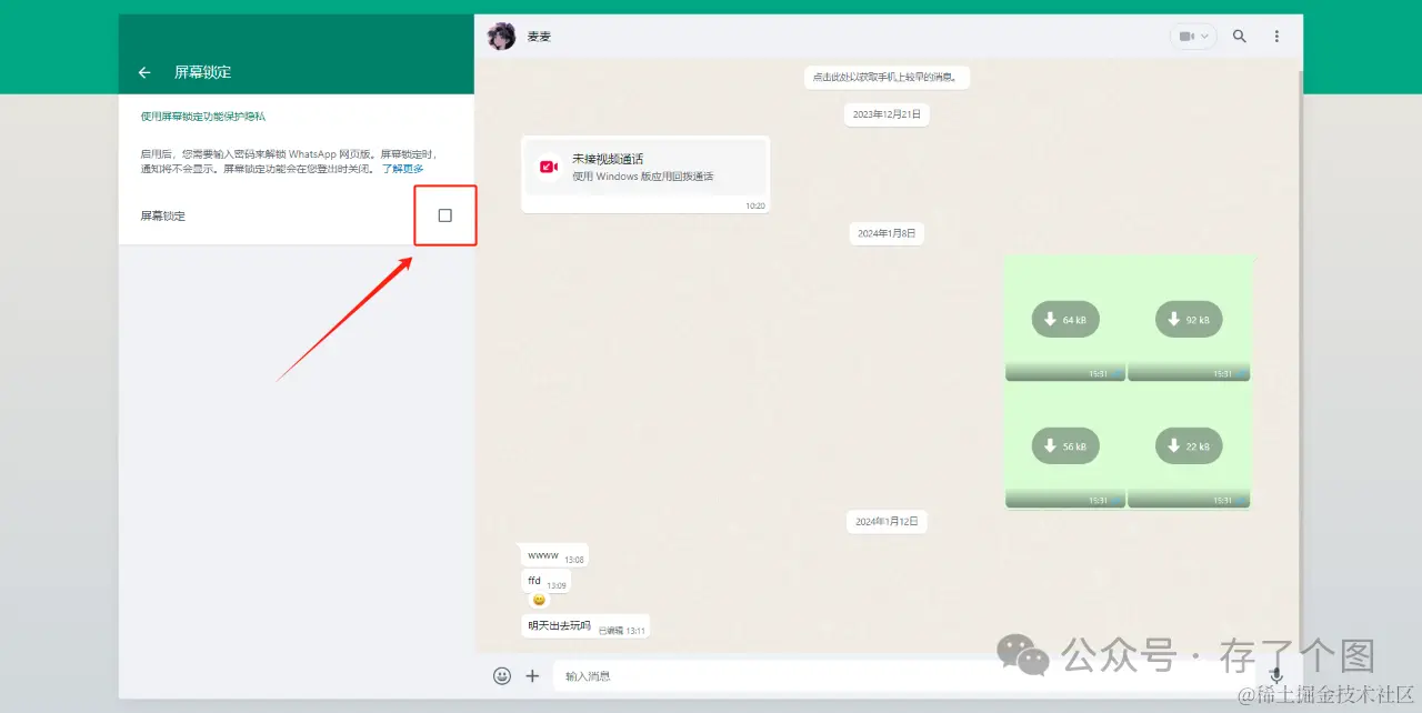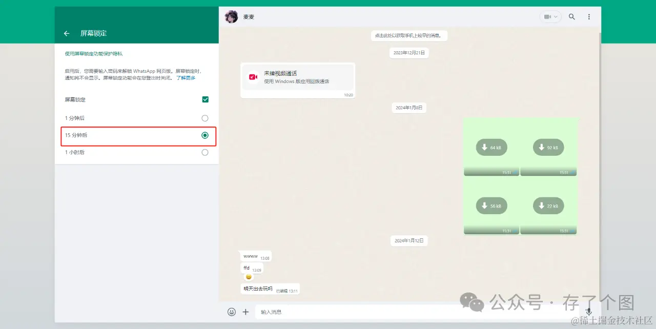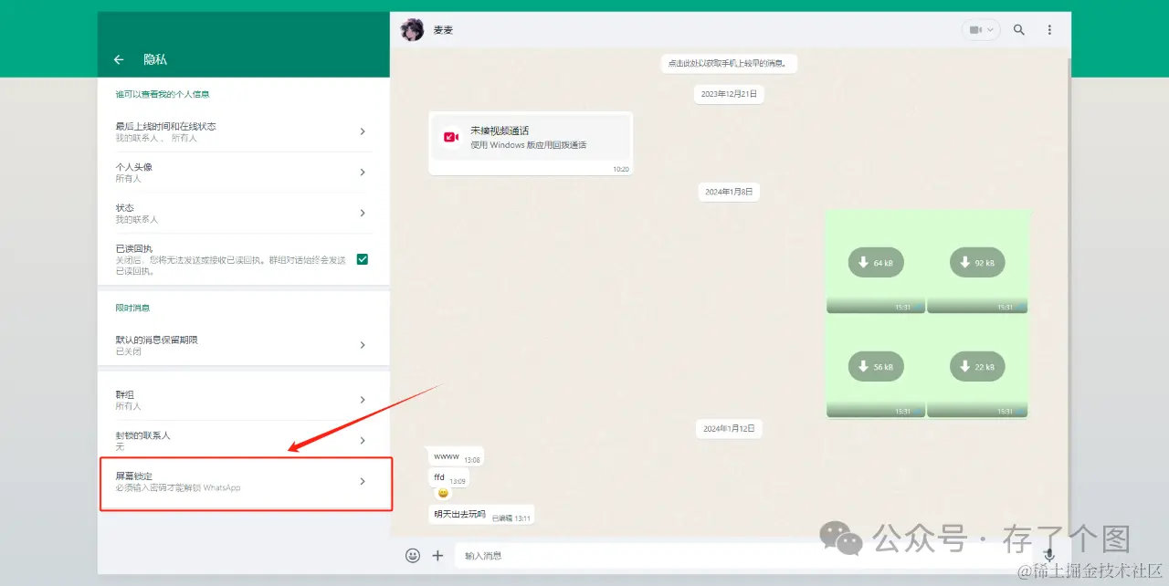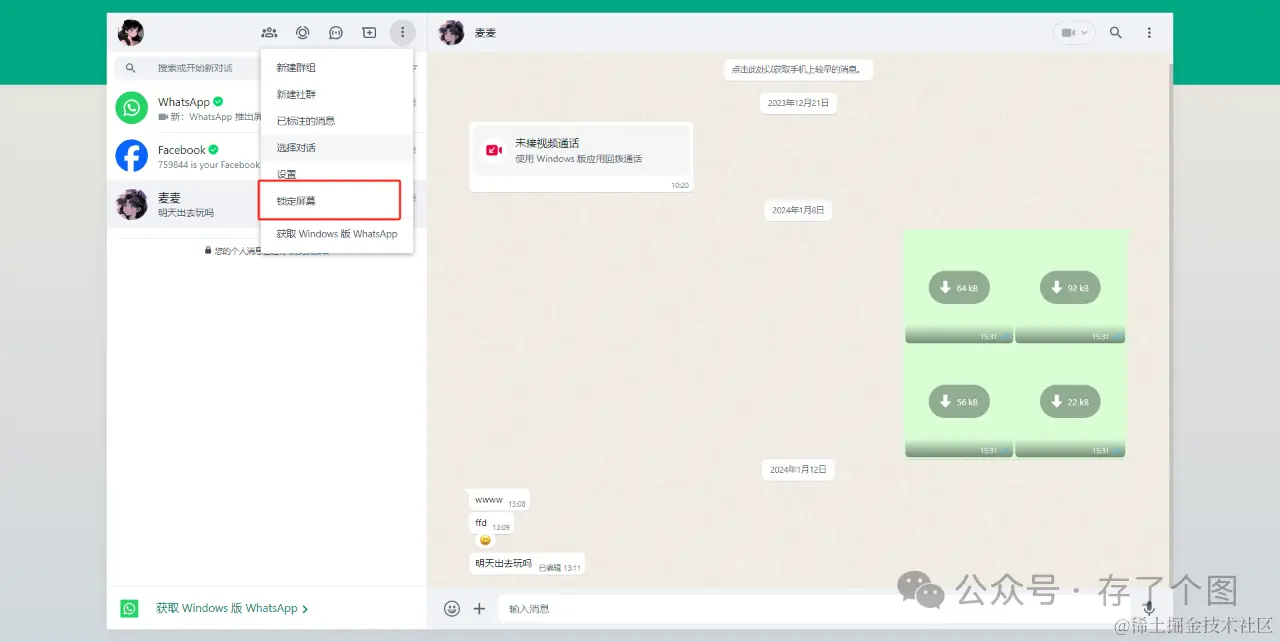 若想测试一下锁定屏幕的功能,可以在聊天界面右上角点击“三个点”后点击“锁定屏幕”