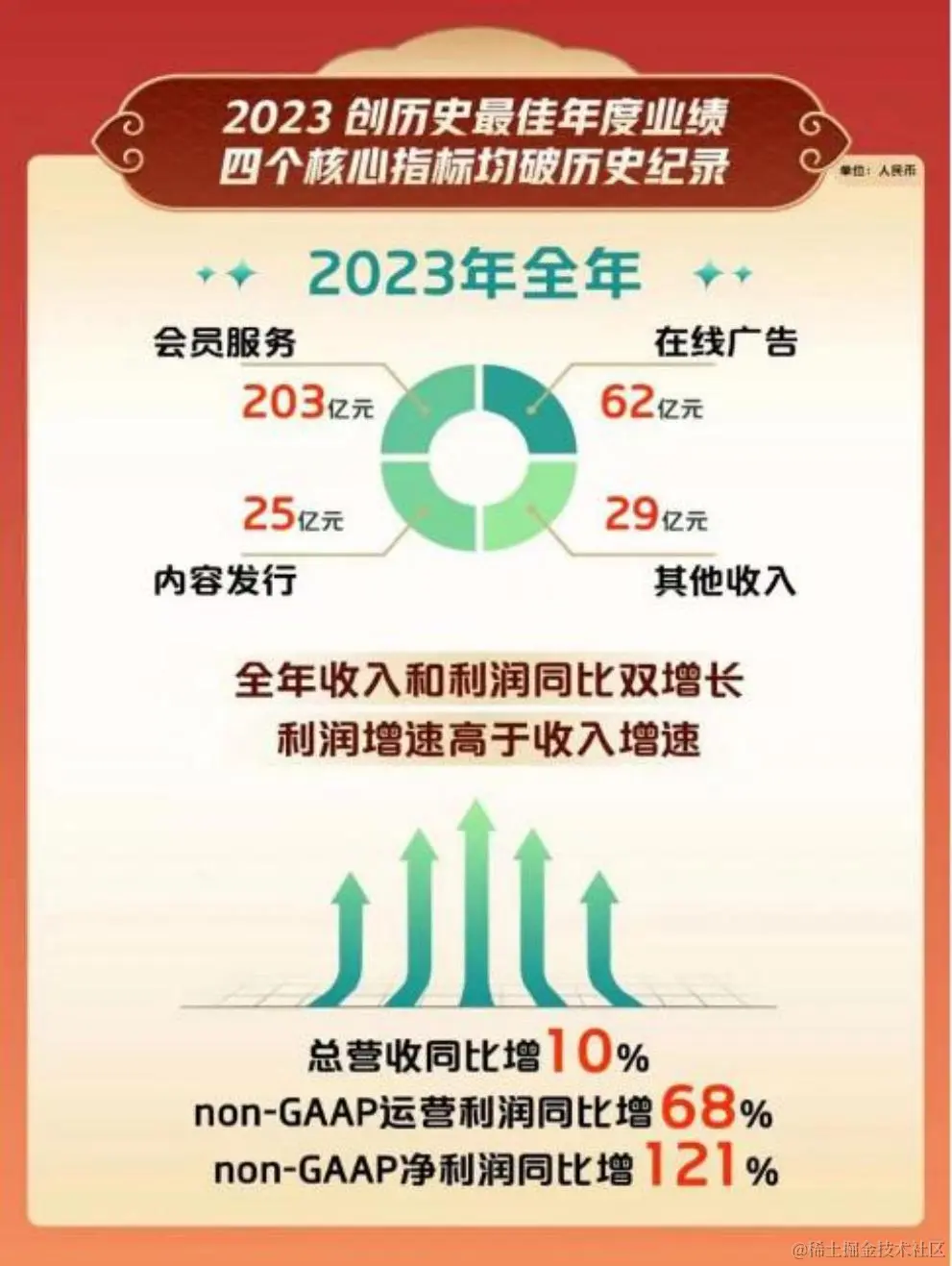 此次爱奇艺年报中也特别提到:" 近 3 年剧集整体内容成本率逐年改善,2023 年爱奇艺剧集的内容成本率较 2022 年下降了 12 个百分点,这直接推动了利润增长 "。