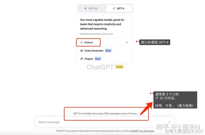 GPT 版本有 GPT-4、GPT-3.5。 前者是 ChatGPT Plus 会员专属。