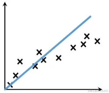 上图中, 蓝线就是我们的回归模型,x就是我们的样本点,用蓝线来拟合样本点的走向的过程就是训练过程