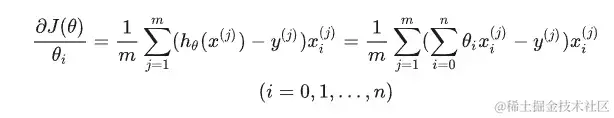 (2)再更新θ,θ = θ - α * 关于θ偏导数 ,完全的推导公式如下
