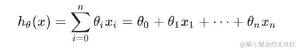 在前面我们用的是一次函数,这时候就是只有一个特征量,但是在实际应用中都是有很多的,这时候,假设函数的函数表达式应该如下所示